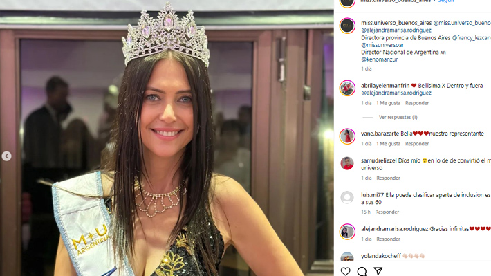 Luego de ganar este concurso de belleza, Alejandra recibió un abrazo generalizado de las otras concursantes y también el aplauso virtual de sus seguidores de Instagram, quienes la felicitaron por consagrarse en este evento que reúne a diferentes modelos de todas las provincias.