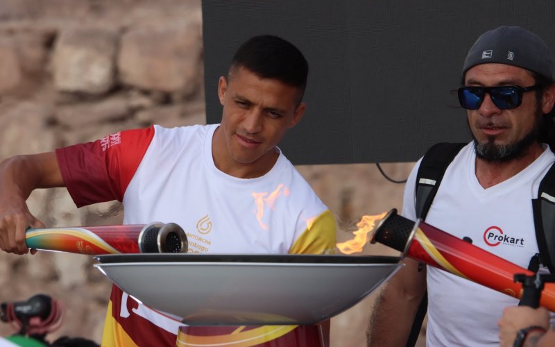 Alexis Sánchez llevó la antorcha de los juegos Santiago 2023 por las calles de Antofagasta