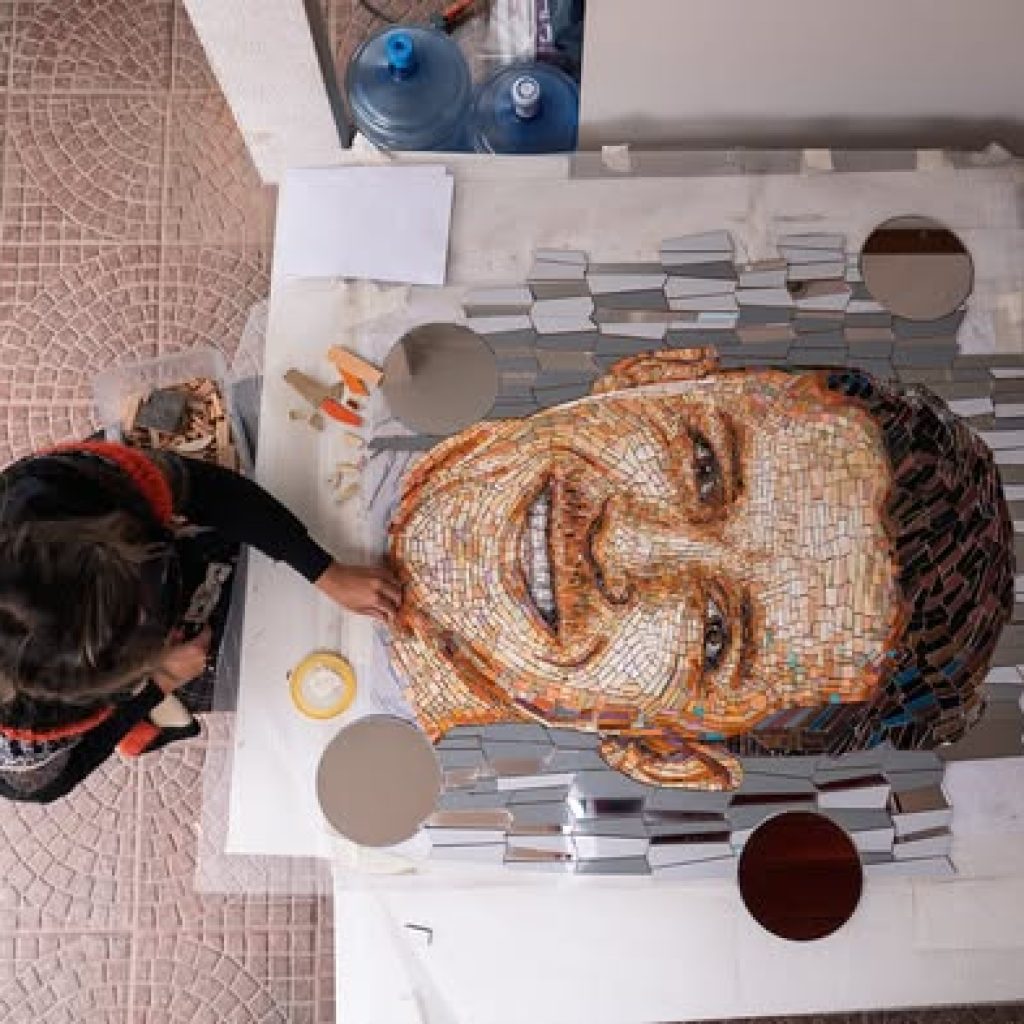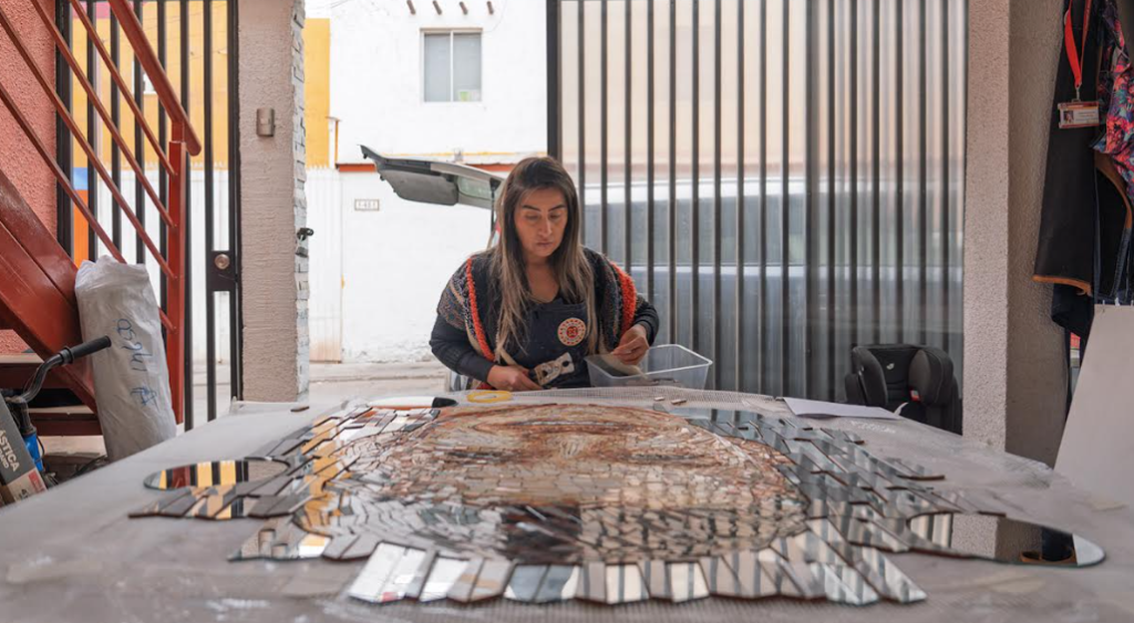 Esta creación fue posible gracias al apoyo de las Operaciones Norte de Codelco a través de un proyecto de inversión comunitaria, respaldo que permitió materializar la visión y el talento de la artista Nanda Yasoda, quien, junto a los mosaiquistas Gonzalo San Martín y Leonardo Rojo, trabajaron durante meses en los detalles que dan forma al proyecto: cada fragmento de esmalte fue cortado, pensado y dispuesto como en un ritual. Cada pieza, pegada una a una, guarda la temperatura de un oficio y la huella de quienes lo sostienen. Así, el arte se vuelve luz: pequeñas lámparas que, desde lo cotidiano, iluminan la memoria viva de un pueblo.