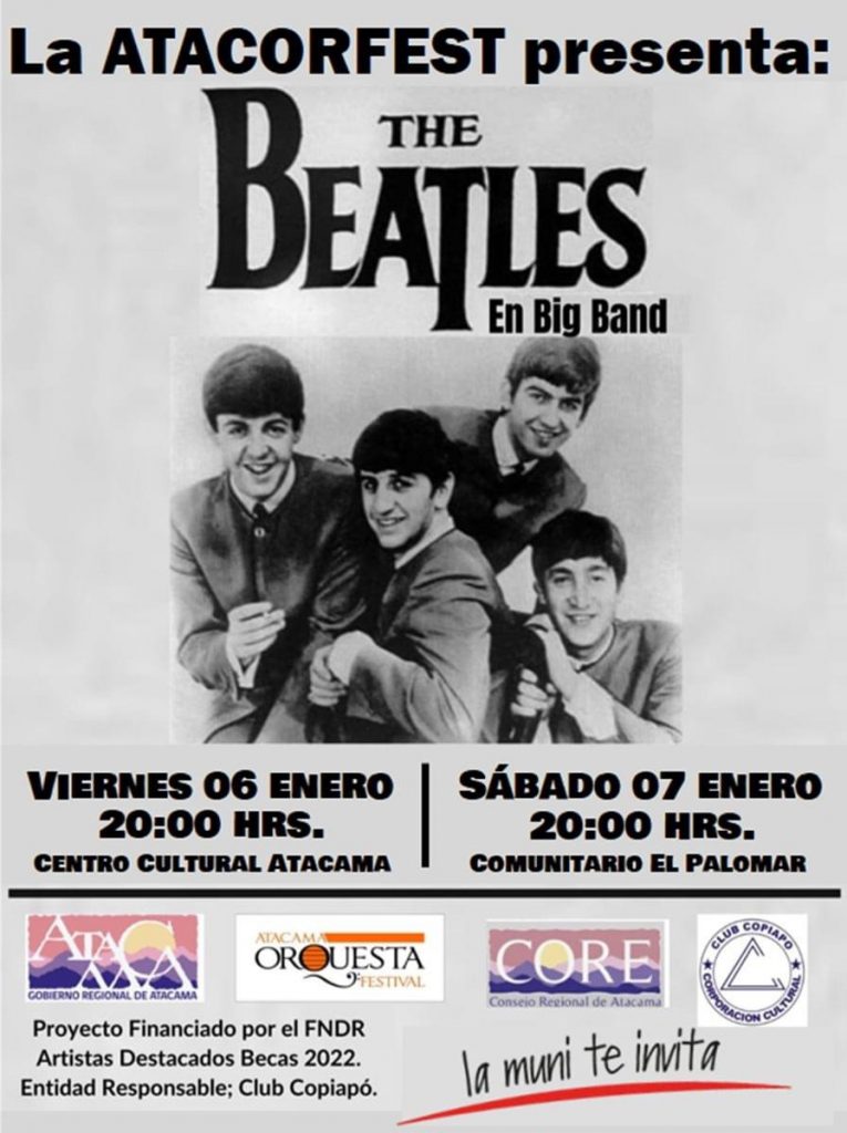 Los éxitos de “The Beatles” se tomarán el Centro Cultural Atacama y el Centro Comunitario El Palomar