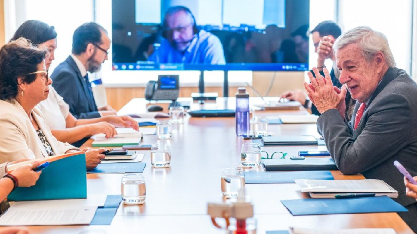 Este lunes se desarrolló la primera reunión de trabajo que fue encabezada por el canciller Alberto van Klaveren, y participaron también la titular de Minería, Aurora Williams, la subsecretaria de Relaciones Económicas Internacionales, Claudia Sanhueza; la subsecretaria de Minería, Suina Chahuán, y la vicepresidenta ejecutiva (s) de Cochilco, Claudia Rodríguez. Además, se conectó vía telemática el embajador de Chile en Estados Unidos, Juan Gabriel Valdés, y el presidente del Directorio de Codelco, Máximo Pacheco.