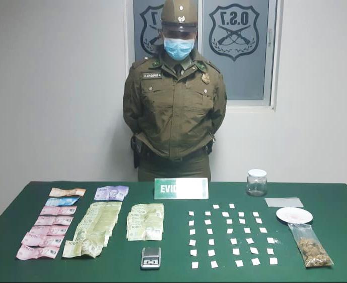En este contexto, se llevó a efecto el procedimiento de Borgoño donde se detuvo a un poblador de 31 años, quien se dedicaba a la venta de pasta base de cocaína y marihuana en pequeñas cantidades.