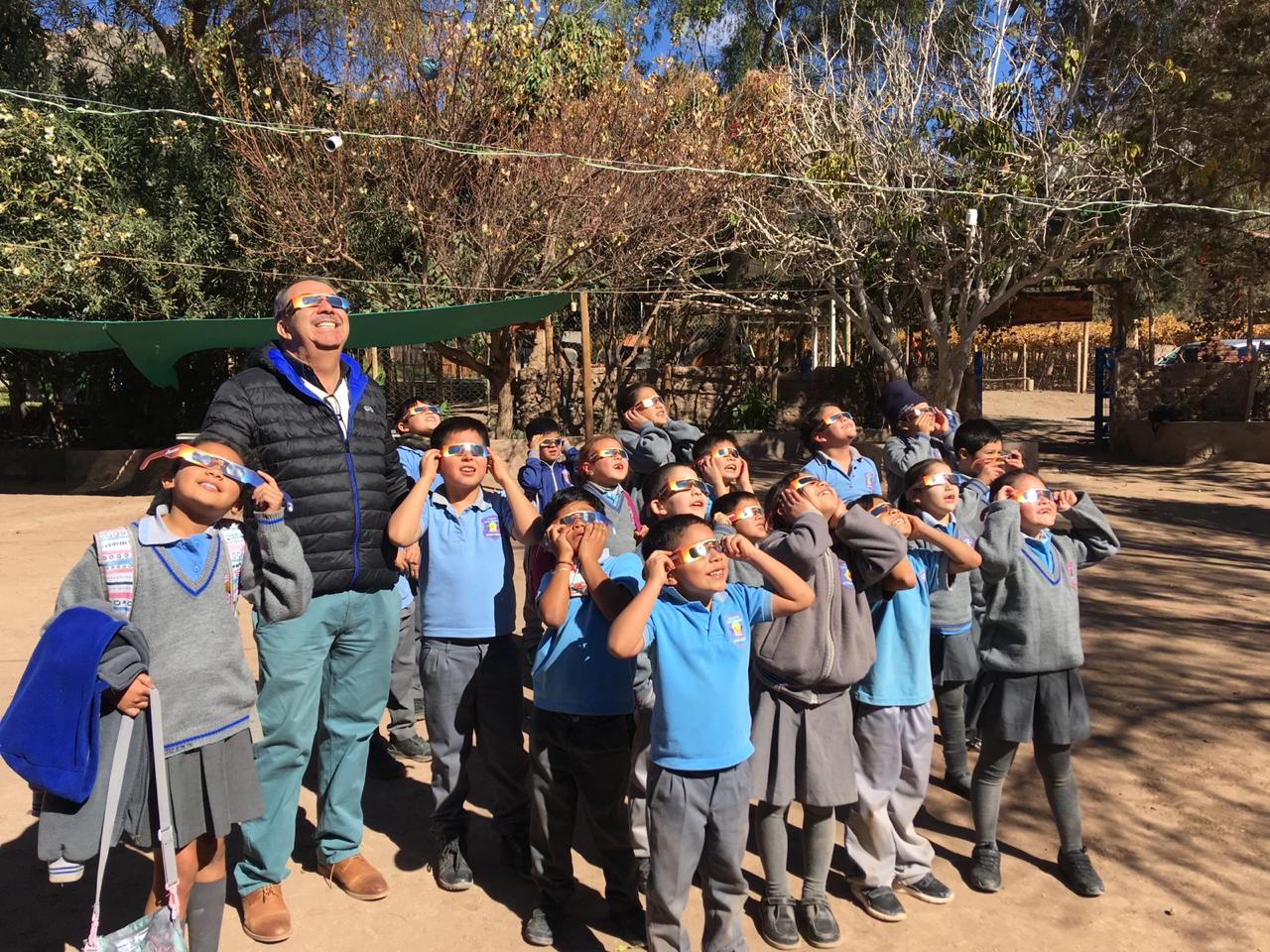 Un total de 1.000 lentes fueron distribuidos por la Gerencia de Relaciones Comunitarias de Minera Lumina Copper Chile a través de su operación Caserones, del valle alto de Copiapó, con prioridad a las escuelas rurales, con el objetivo de ver el eclipse de manera segura en la comuna de Tierra Amarilla.