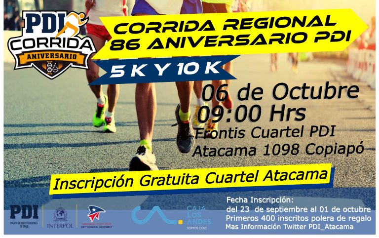 PDI invita a la comunidad a inscribirse en corrida aniversario a realizarse este domingo