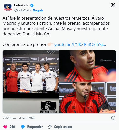 Así las cosas, Colo Colo suma un nuevo embrollo en su difícil inicio de temporada. Los albos recibirán a Everton este sábado 7 de febrero, buscando sumar sus primeros puntos en la Liga de Primera 2026.
