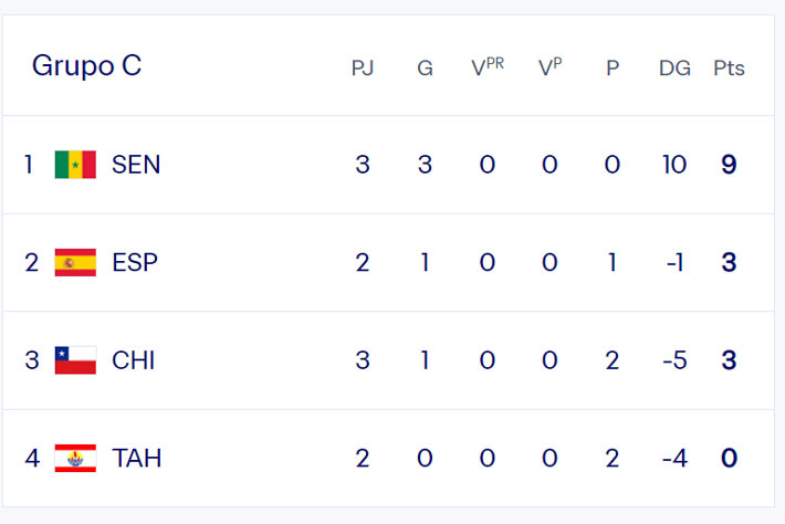 La “Roja” debutó en la cita con un triunfo de 7-6 sonre Tahití y luego cayó 4-2 ante España. Llegó al último partido con tres puntos y en la tercera posición del Grupo C.