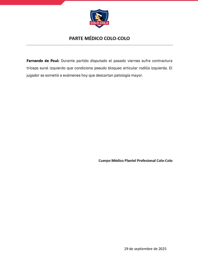 Hasta ahora, no se sabía del estado del portero, pero en las últimas horas Colo Colo entregó el parte médico.