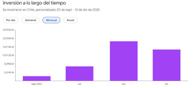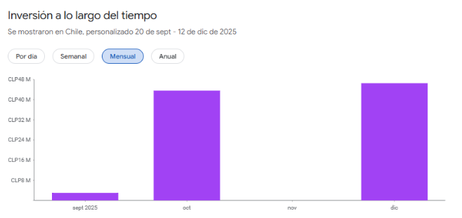 En el primer concepto, lo pagado corresponde a $96.500.000 con 515 anuncios con mayor inversión en las regiones: Metropolitana, Bío Bío, Antofagasta, Maule y O’Higgins. Esto, con un 62,7% de imágenes y 37,3% en videos.