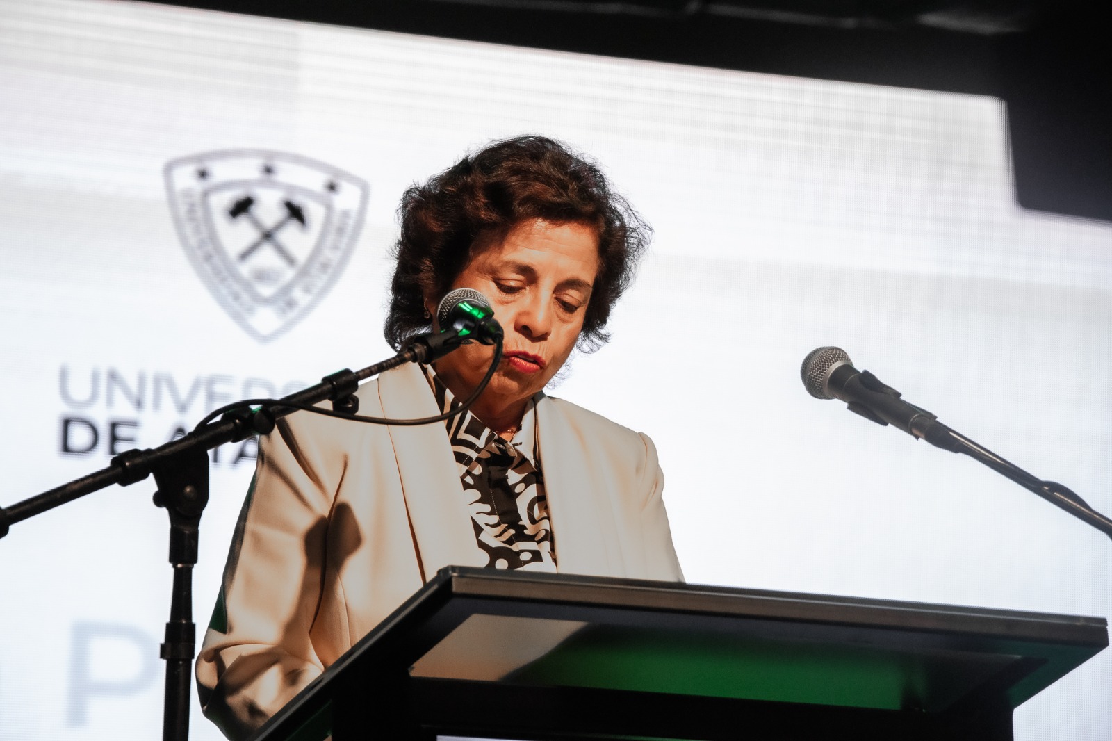 Destacó la presencia de la Ministra de Minería Aurora Williams Baussa, quien enfatizó que “Esta año a Universidad de Atacama ha sido el epicentro de la discusión de las principales políticas públicas que como ministerio estamos impulsando” La presentación de la agenda de relaves, la firma de convenio del programa PAMA 2025, la adjudicación del proyecto Anillos “Diversificación en la industria del Litio” y ser la primera universidad en suscribir un convenio con el Instituto Nacional del Litio y Salares, fueron hitos institucionales destacados por la ministra, quien compartió la noticia de la reciente aprobación ambiental del proyecto de modernización de la Fundición Hernán Videla Lira. “Con esto recuperamos y aumentamos la capacidad de fundición en nuestro país y lo hacemos desde la región de Atacama” subrayó la jefa de la cartera minera.