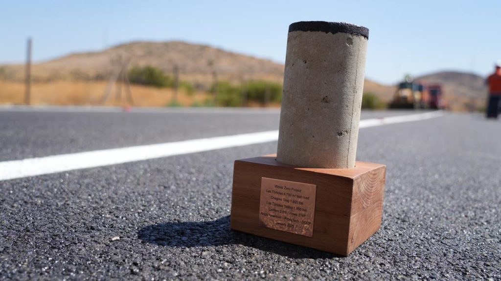 Kattherine Ferrada, gerenta de Medio Ambiente de Anglo American cuenta que “solo en Chile existe un volumen estimado de casi 49 millones de toneladas, que podrían reemplazar hasta el 60% de una mezcla asfáltica, permitiendo –hipotéticamente– pavimentar el país de Arica a Punta Arenas 29 veces”.