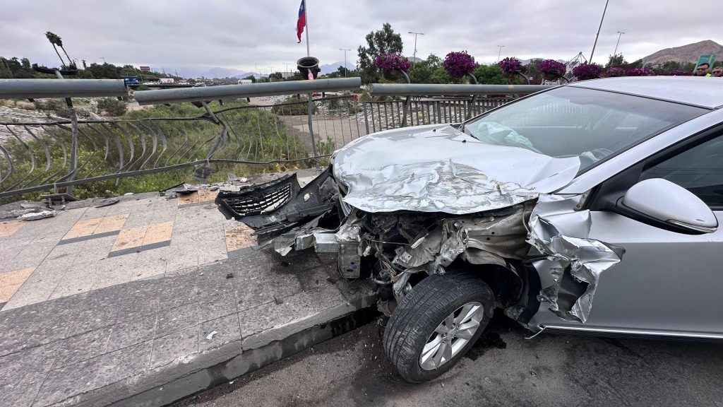 Otro accidente se registró en la intersección de Avenida Circunvalación con Alameda, salida Lautaro, donde un automóvil también colisionó con la barrera del sector.