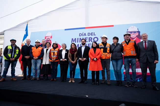 El Presidente de la República, Gabriel Boric Font, encabezó el mediodía de este jueves en la Plaza de la Constitución, la ceremonia de conmemoración del Día del Minero y la Minera, donde junto a los ministros de Relaciones Exteriores, Alberto van Klaveren; del Trabajo, Jeannette Jara, y de Minería, Marcela Hernando, firmó un mensaje para que el Congreso Nacional ratifique el Convenio 176 de la Organización Nacional del Trabajo (OIT), sobre seguridad y salud en la minería.