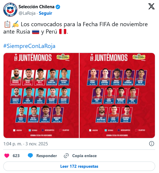 Además, el encuentro ante Chile también seguirá con su programación: el martes 18 de noviembre a las 14:00 horas de nuestro país.