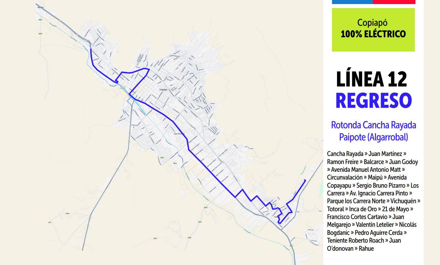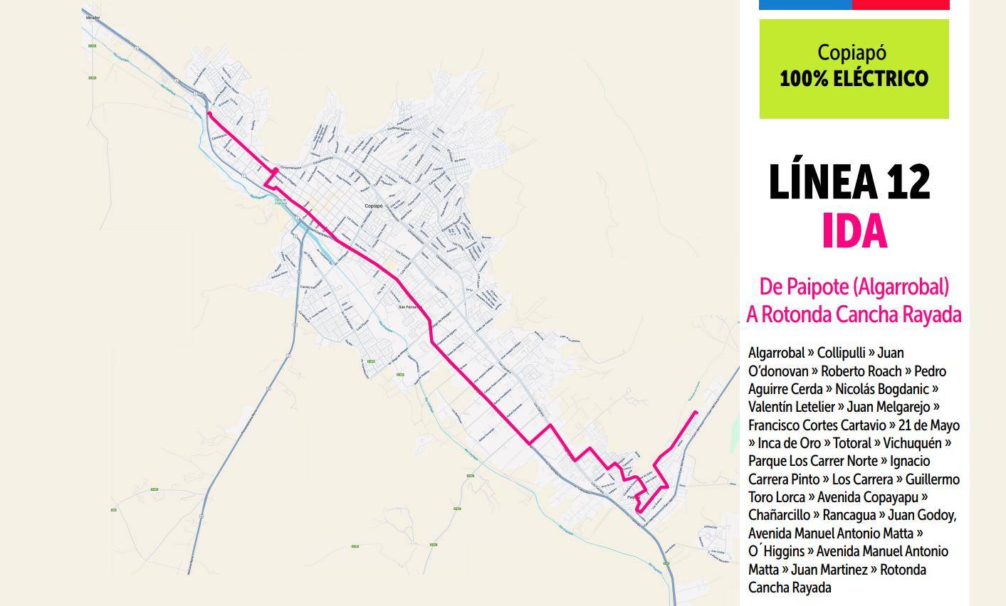 • Línea 12: Paipote (Algarrobal) – Rotonda Cancha Rayada