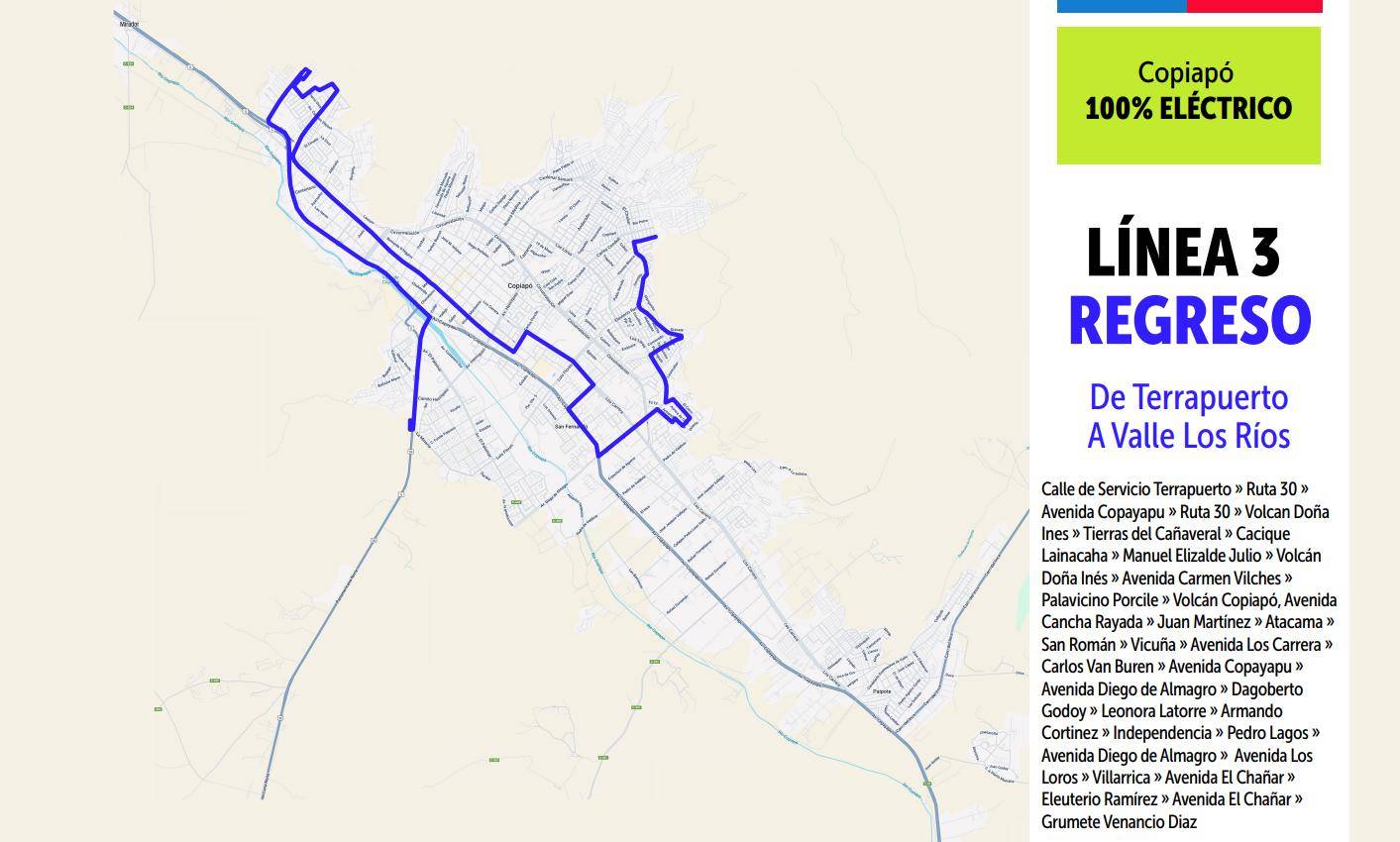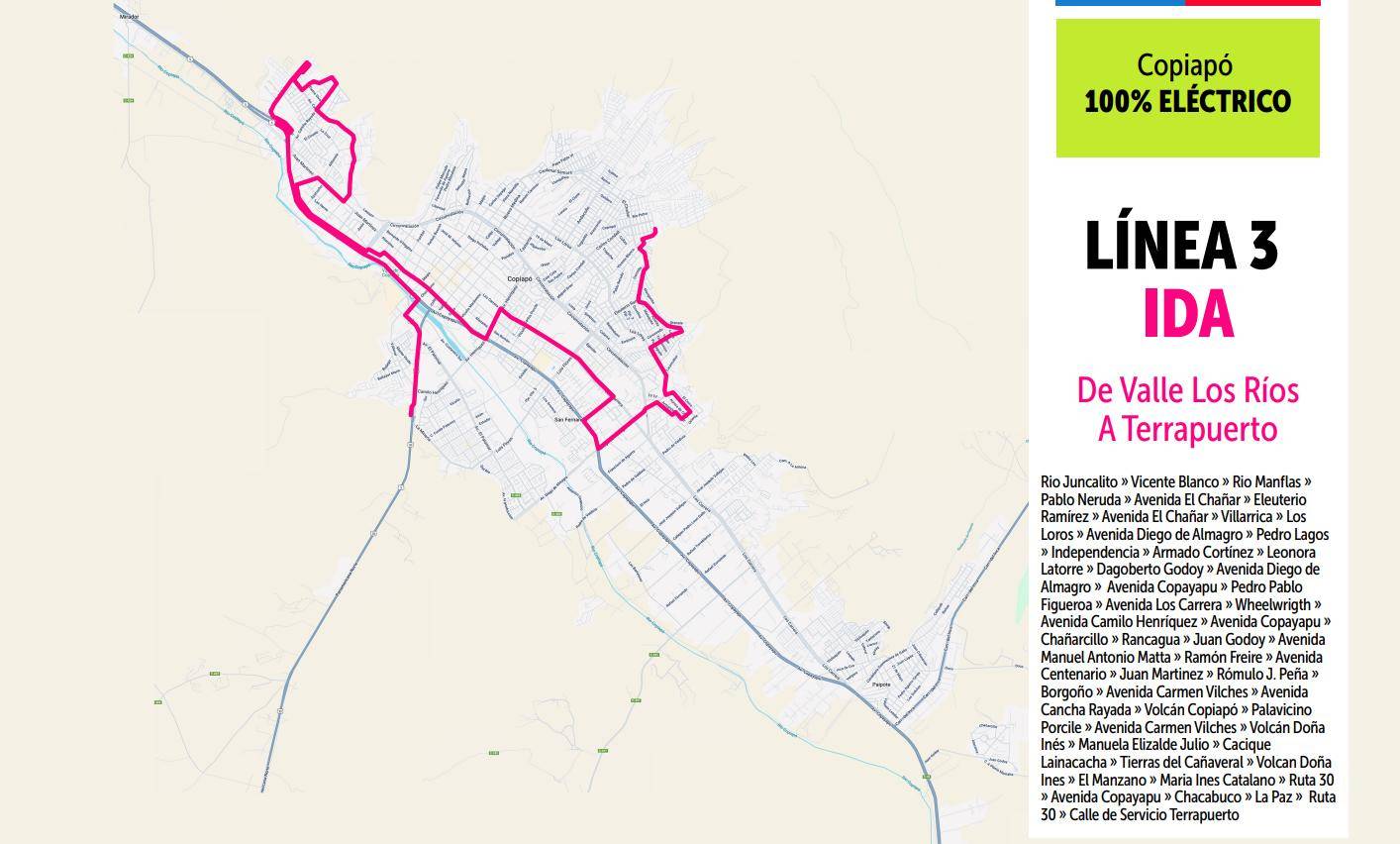 • Línea 3: Valle Los Ríos – Terrapuerto