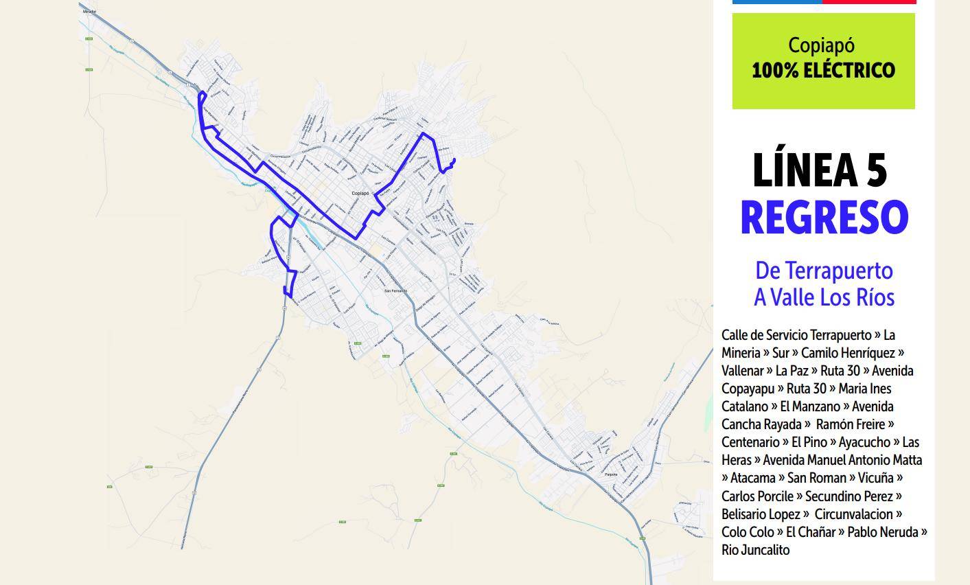 • Línea 5: Valle Los Ríos – Terrapuerto