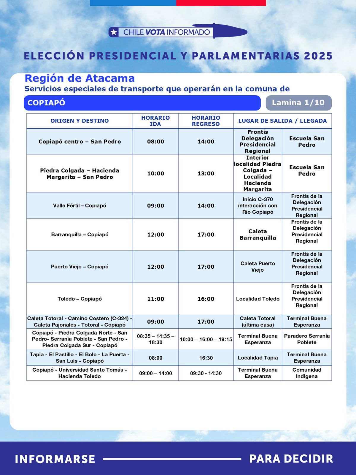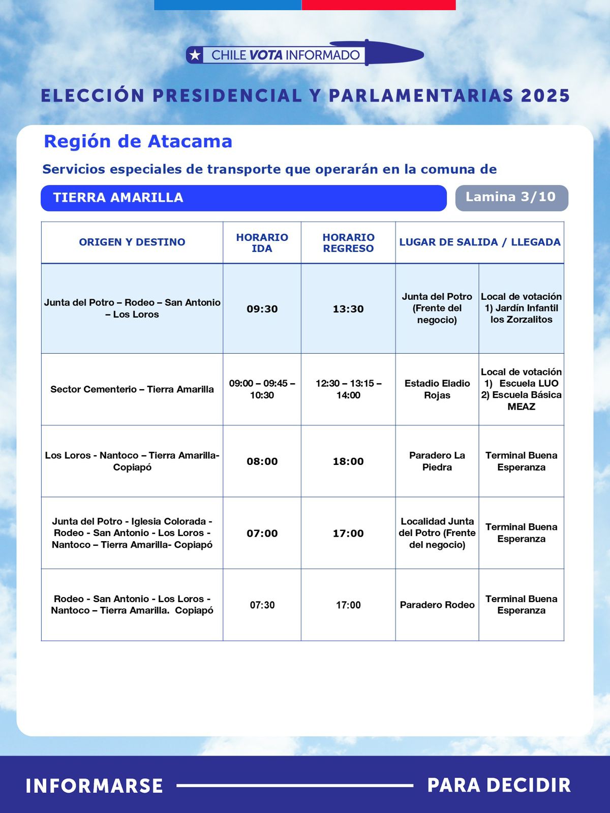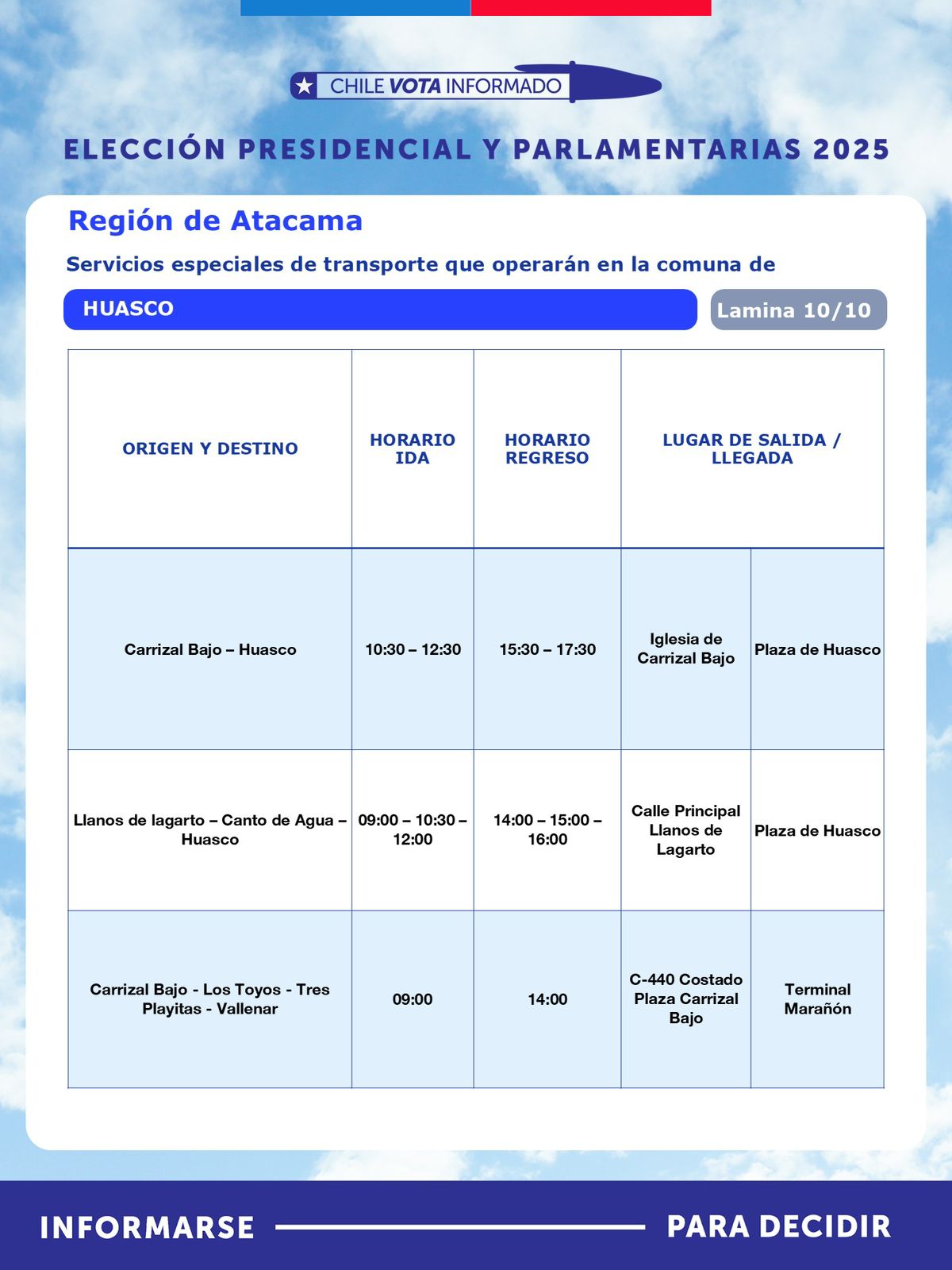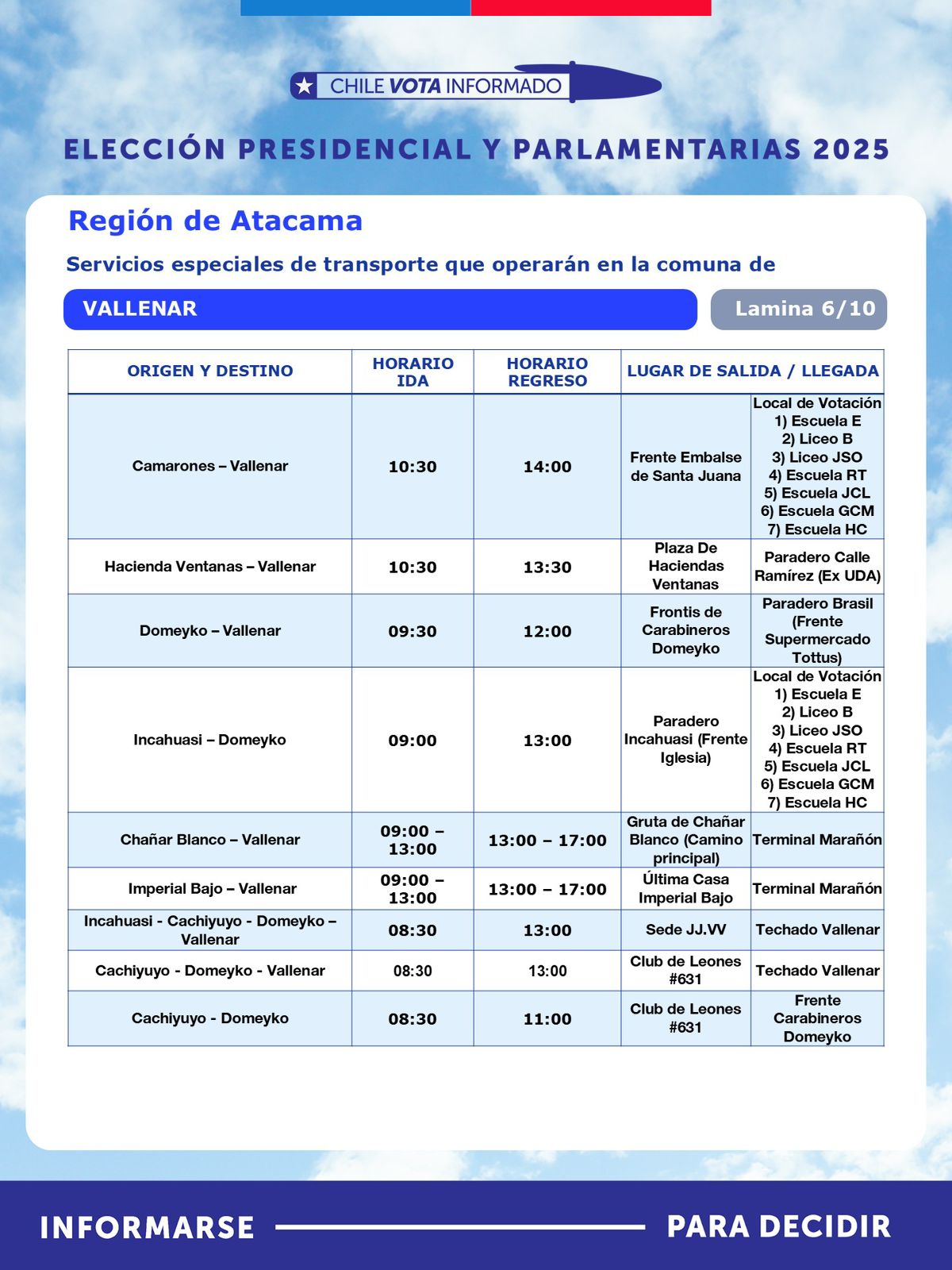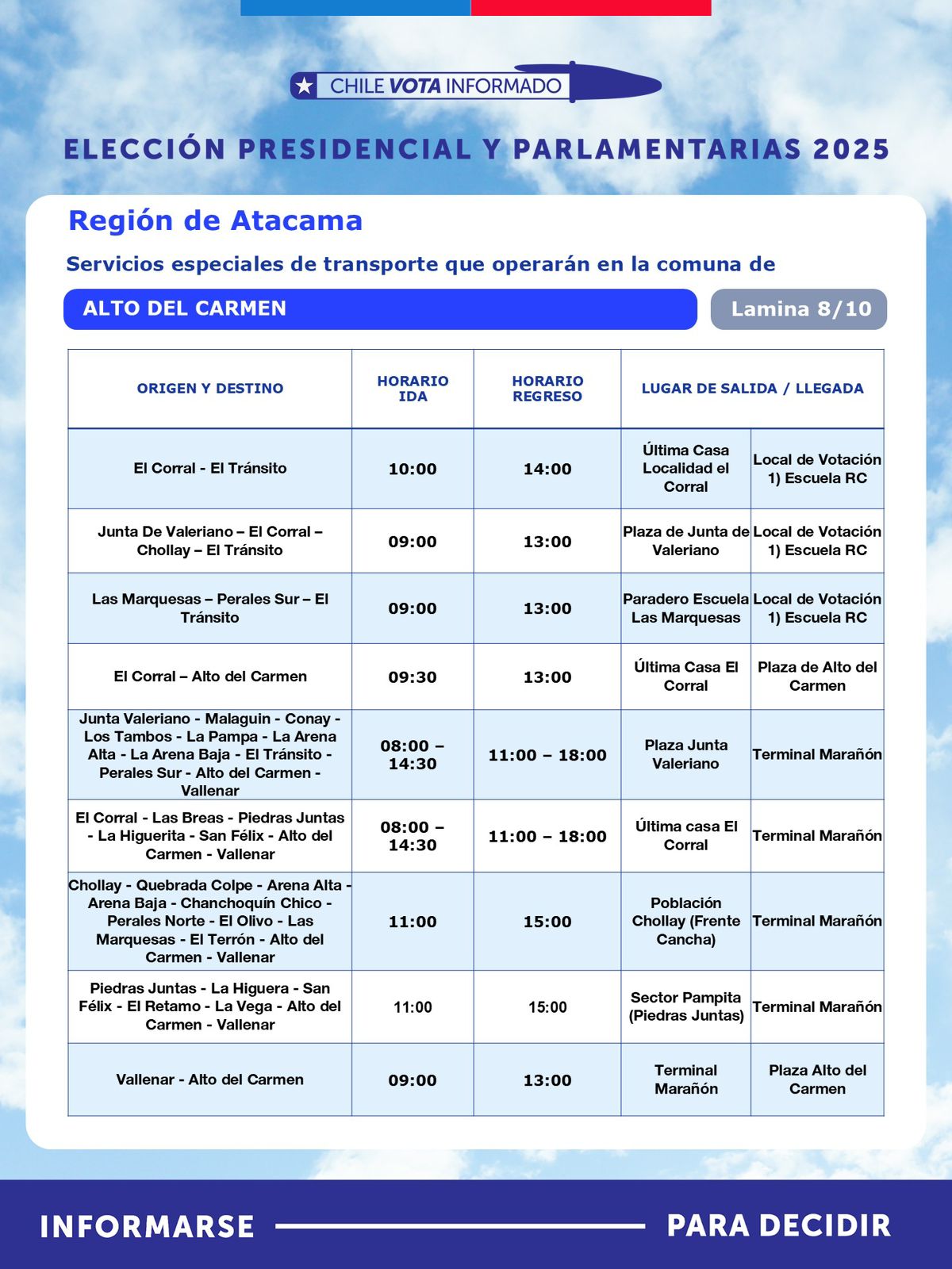 Con motivo de la segunda vuelta de la Elección Presidencial, que se realizará este domingo 14 de diciembre, la Seremi de Transportes y Telecomunicaciones de Atacama, anunció la implementación de un plan especial de transporte público rural subsidiado, destinado a facilitar el traslado gratuito de habitantes desde sectores apartados hacia sus locales de votación.