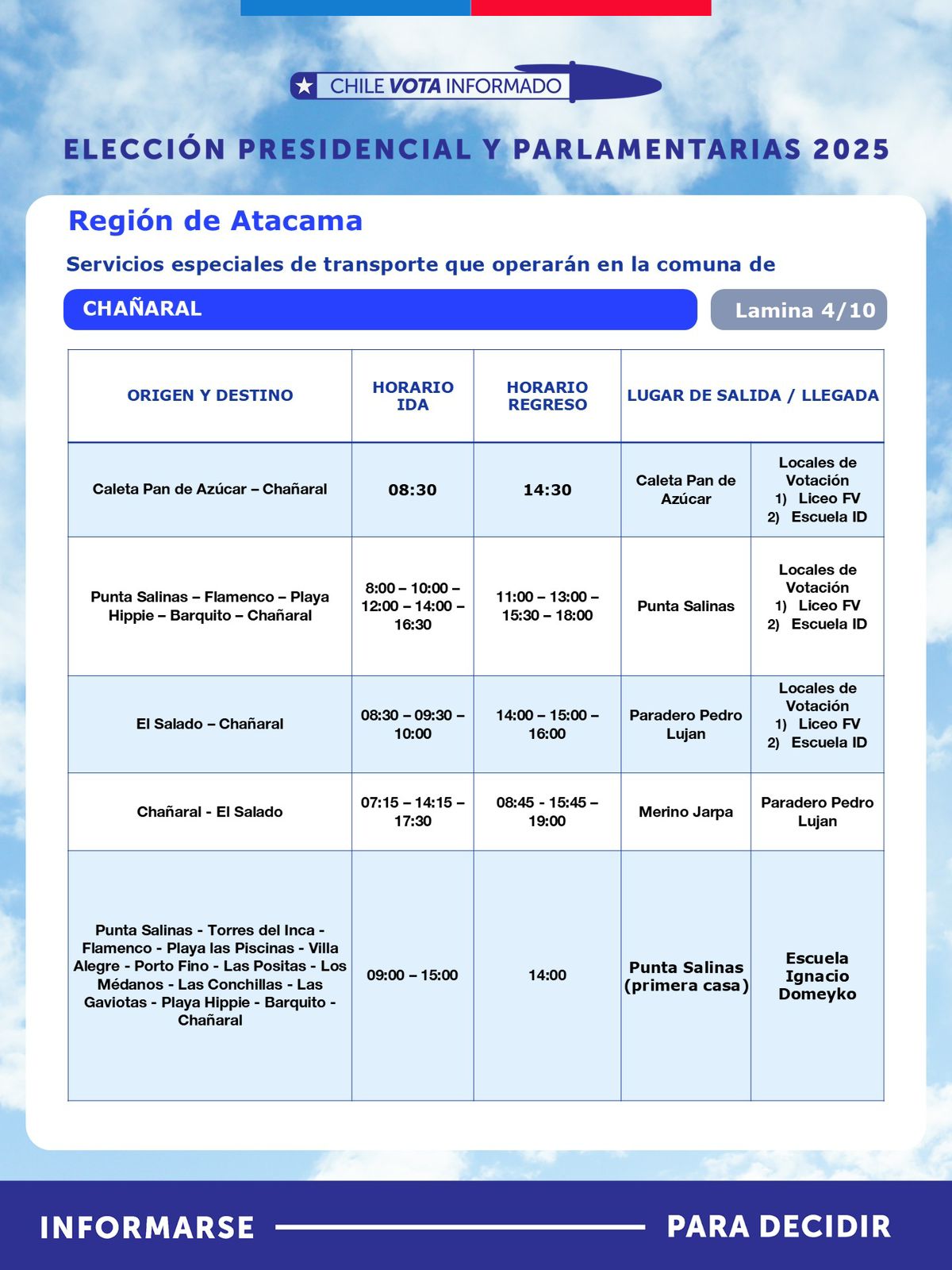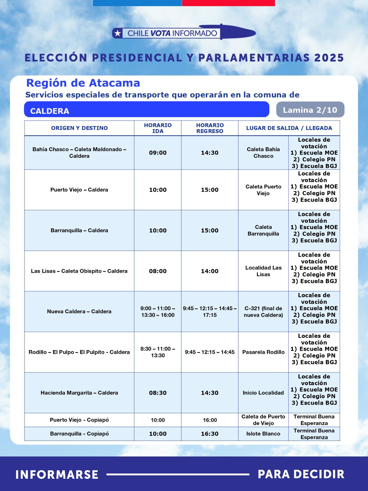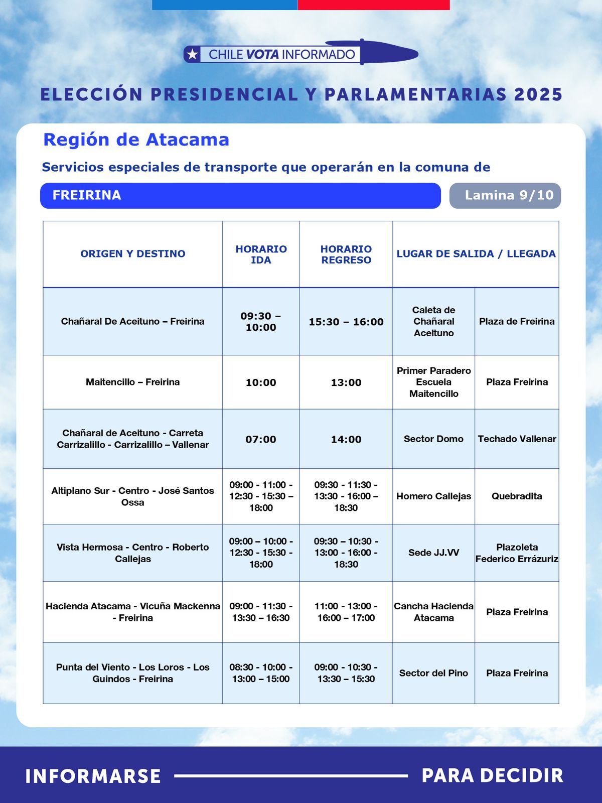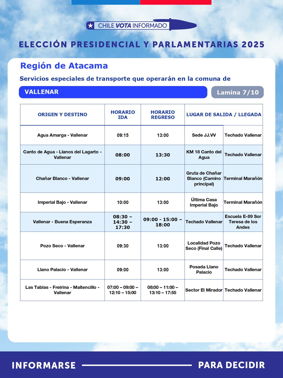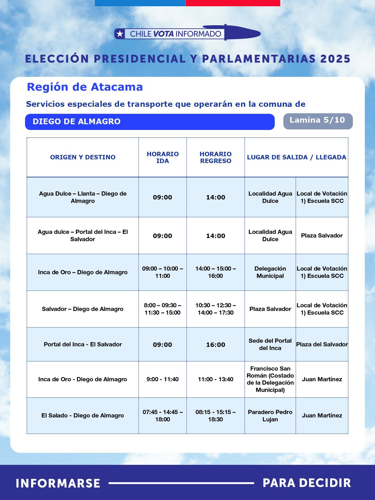 Con motivo de la segunda vuelta de la Elección Presidencial, que se realizará este domingo 14 de diciembre, la Seremi de Transportes y Telecomunicaciones de Atacama, anunció la implementación de un plan especial de transporte público rural subsidiado, destinado a facilitar el traslado gratuito de habitantes desde sectores apartados hacia sus locales de votación.