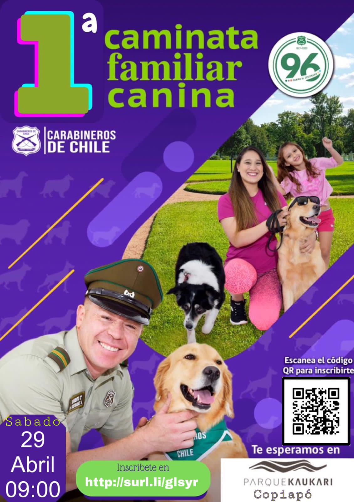 Adicionalmente, realizó una invitación a seguir participando en las actividades de celebración de un nuevo aniversario de Carabineros, específicamente en la primera Caminata Familiar Canina que será desarrollada este sábado en el Parque Kaukari de Copiapó, desde las 9:00 de la mañana.