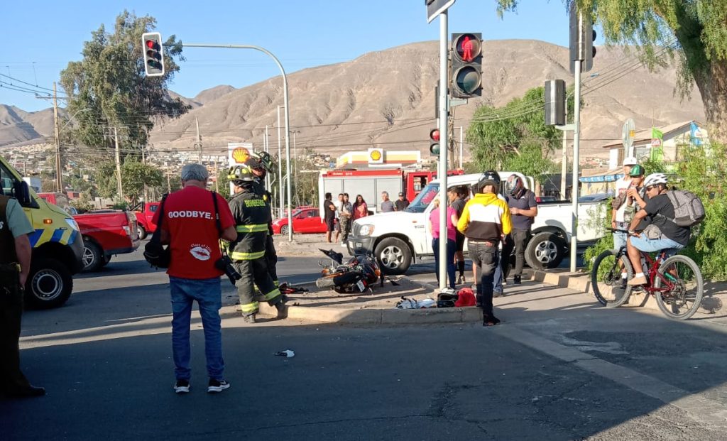 Poco después de las 18:00 horas de este miércoles, una colisión protagonizaron una motocicleta y un vehículo menor en la intersección de Avenida Circunvalación y Luis Flores en la capital de Atacama.