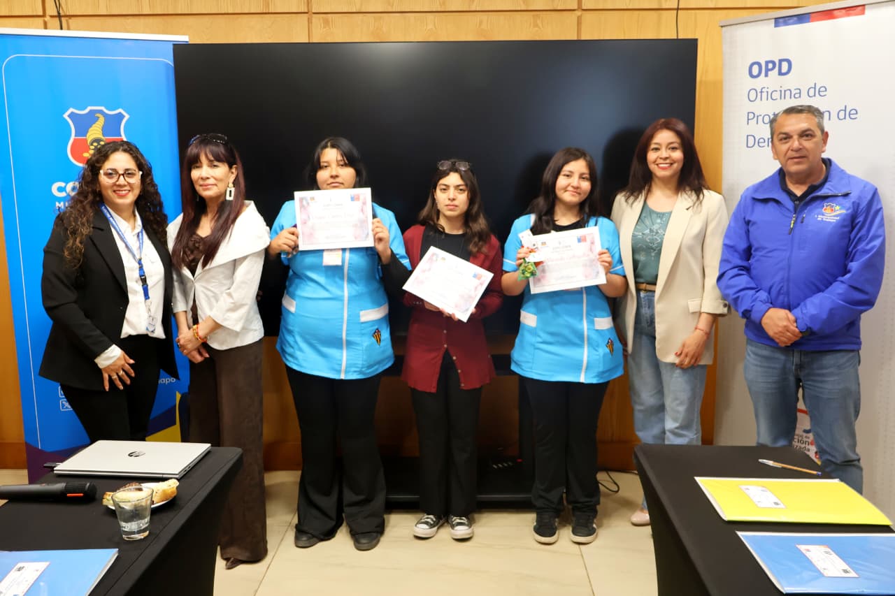 Patricia Henríquez, orientadora educacional del Liceo José Antonio Carvajal, agradeció a la OPD la instancia de que sus estudiantes, Dayane Cortés, Pía Miranda, Daniela Lobos y Catalina Malebrán, lograran exponer en la mesa y reflejar los conocimientos adquiridos. “Las niñas mostraron todo su trabajo durante el año a través de estadísticas y siento que lo hicieron espectacular. Andrés es el psicólogo que las apoya y hoy podemos decir que son lideresas en el tema de la prevención y el buen ambiente en los centros de alumnos”.