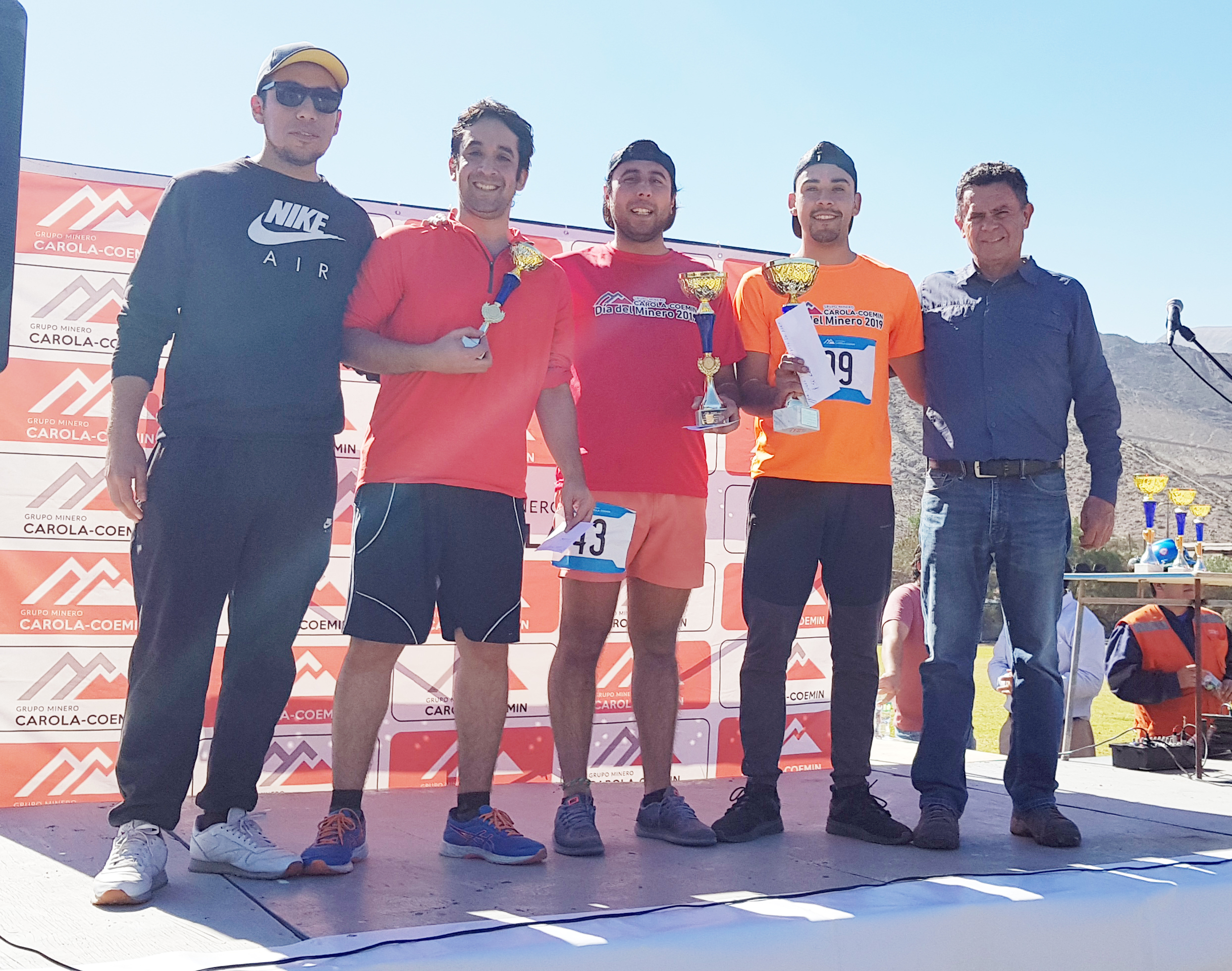 El primer lugar, Varones hasta 40 años, fue para Hazael Tabilo, de Operaciones Mina; el segundo puesto fue para Elías Rivera y tercero, Pablo Garat, ambos de Geología.