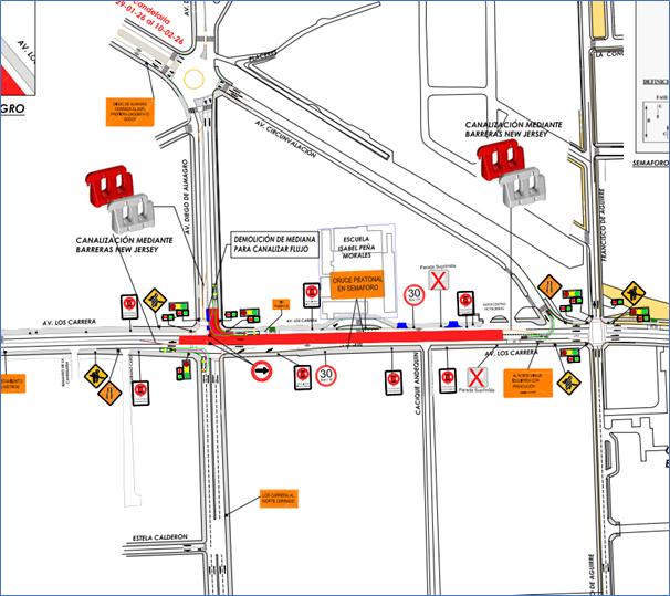 - Av. Diego de Almagro en la intersección: se suprime el tránsito por el cruce, quedando restringido el paso en ese punto.