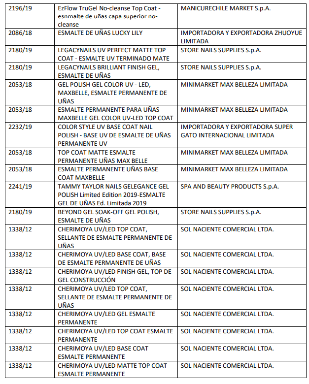 El Instituto de Salud Pública (ISP) emitió una alerta cosmética tras detectar esmaltes de uñas que en su composición tienen un componente prohibido en el país, por lo que deberán ser retirados del mercado.