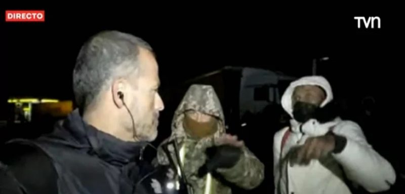 De fondo, se veían dos militares armados conversando con el equipo de TVN, que debió cortar el despacho de manera inmediata.
