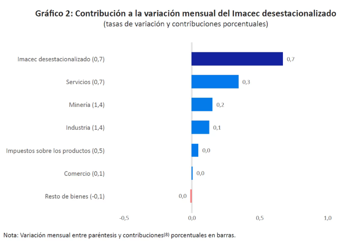 Desde el Banco Central explicaron que el resultado se explicó principalmente por el desempeño de los servicios y comercio, mientras que en términos desestacionalizados influyó los servicios, minería e industrial.