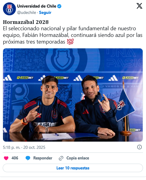 La Universidad de Chile cerró una de las noticias más esperadas por los hinchas. Los azules hicieron oficial la renovación de Fabián Hormazábal, pieza clave en el ‘11′ titular de Gustavo Álvarez.
