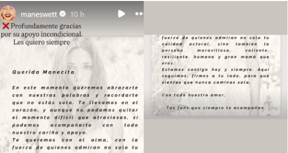 Te queremos con el alma, con la fuerza de quienes admiran no solo tu calidad actoral, sino también la persona maravillosa, valiente, resiliente, humana y gran mamá que eres”, agregaron.