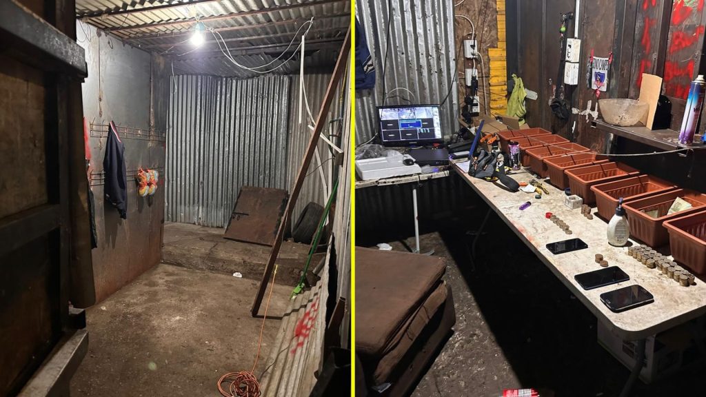 Esto pudo confirmarse al notar a dos personas en las afueras, una de ellas armada, las que escaparon al ver la presencia de los efectivos policiales. Uno de los sospechosos se escondió en el inmueble, por lo que Carabineros aprovechó de acceder al minimarket, topándose en la puerta nuevamente con el mencionado afiche.