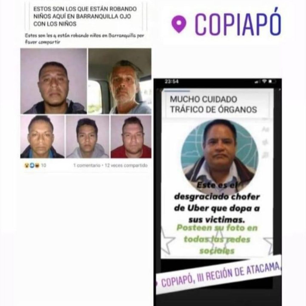 En el segundo caso, se identifica a un supuesto conductor de aplicación, el cual usaría la técnica de dopar a sus posibles víctimas, y que estaría relacionado con el tráfico de órganos, haciendo un llamado a replicar dicha imagen. Lo cierto es que esta misma imagen aparece en una publicación en México, desde un perfil que realizó la publicación en Mercado Libre Mazatlan, Sinaloa.