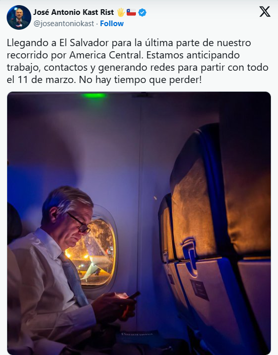 Esta situación obligó al equipo de Kast a modificar el calendario previsto para los viajes y también para su agenda a nivel nacional.