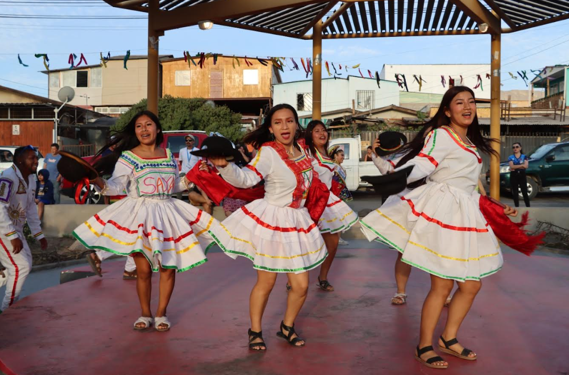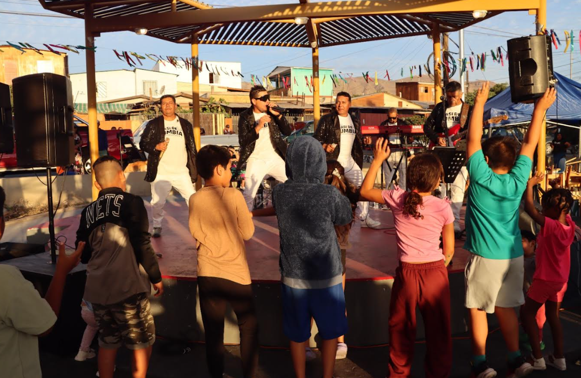 Durante la tarde, el bloque infantil convocó a niñas y niños que disfrutaron de la presentación de la Compañía Garganta Show, animación, concursos, pinta caritas y juegos, generando un ambiente familiar y participativo. Posteriormente, el pasacalle artístico comunitario recorrió el sector con la energía de la Escuela de Arte y Percusión Copiapó, la Banda de Bronce Sabor Moreno y Caporales San Martín Illampu Copiapó, llenando la plaza de ritmo, color y expresiones del norte andino.