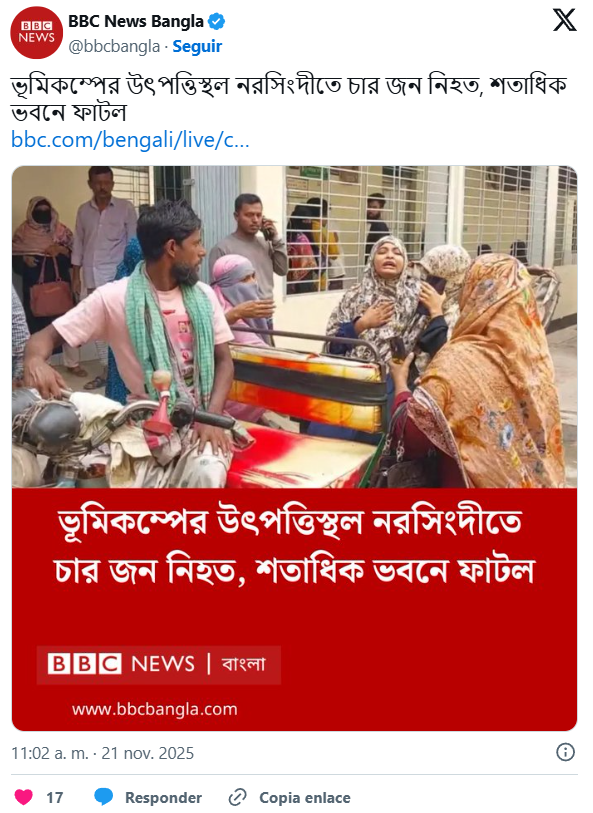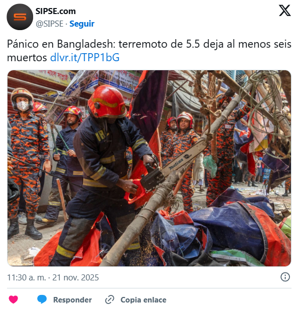 En un comunicado oficial, Muhammad Yunus, asesor principal del Gobierno interino, informó que las autoridades están monitorizando la situación y evaluando los posibles daños tras los temblores registrados en distintas zonas del país. “La seguridad de los ciudadanos es nuestra máxima prioridad. Pedimos mantener la calma y no dejarse llevar por rumores”, afirmó.