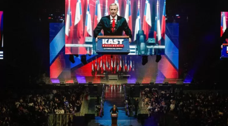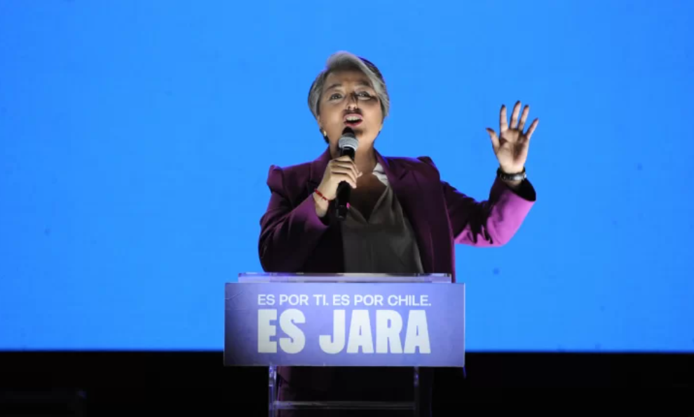 • En su discurso, Jara no mencionó mayormente al presidente ni tampoco a su partido, de los cuales ha intentado sacudirse en su diseño de ampliar su radio electoral. La gente estaba en un ánimo de fiesta y gritaba comentarios groseros contra Kaiser y Kast. Jara criticó al republicano en tres ocasiones.