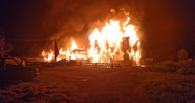 En el lugar, ubicado a cerca de 30 kilómetros de Temuco hacia la costa, se encontró un lienzo dejado por los autores del ataque.