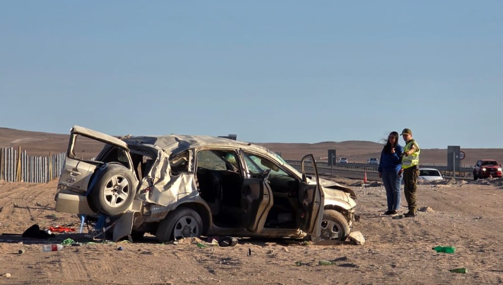Un grave accidente de tránsito se registró durante las últimas horas en el sector del aeropuerto, en la Ruta 5 Norte a la altura del kilómetro 865, en la comuna de Caldera, luego del volcamiento de un vehículo menor.