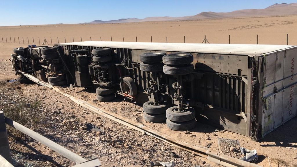 En dicho lugar y por causas que serán investigadas, el conductor de un camión de carga pesada, habría perdido el control de este, volcando a un costado de la ruta, resultando con lesiones de diversa consideración.