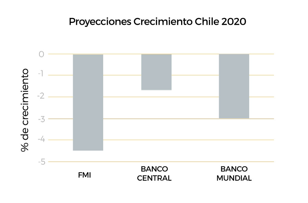 El panorama económico global se anuncia con cifras negativas, en donde se espera una contracción del PIB de un 4,5% para Chile, según el Fondo Monetario Internacional