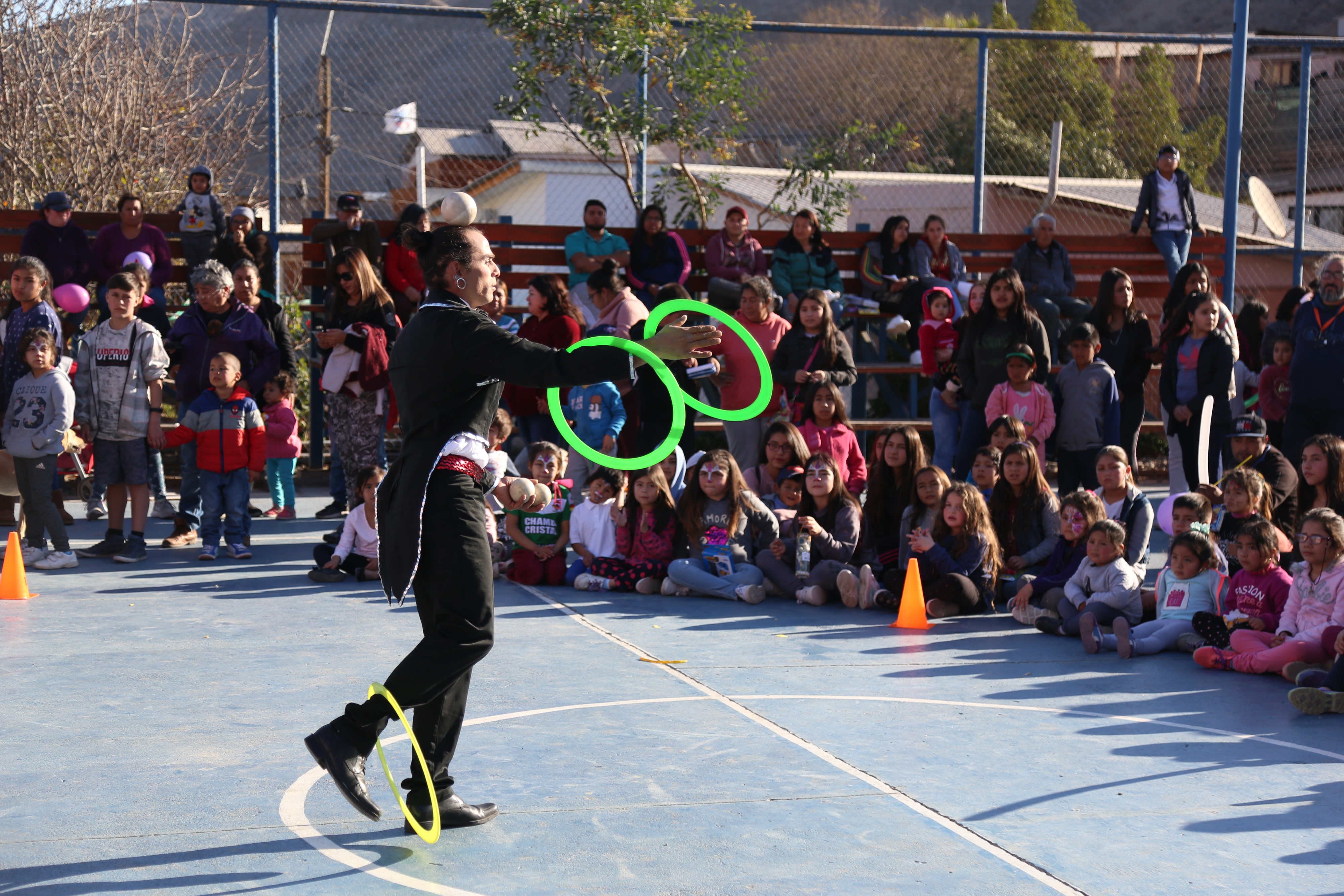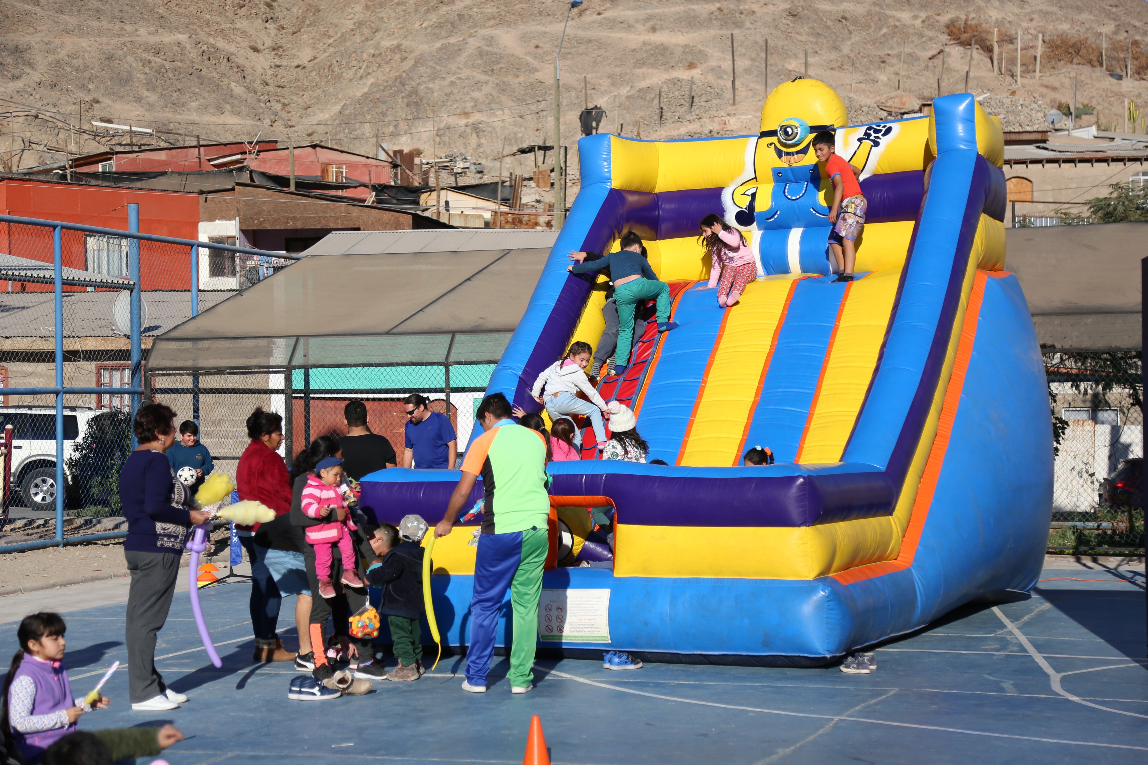 Una cancha de baby fútbol repleta fue el escenario para que cientos de vecinos y vecinas del sector de Cartavio Alto disfrutaran del programa “Vacaciones de Invierno en tu Barrio” de la Municipalidad de Copiapó. En la jornada los niños, niñas y adolescentes pudieron entretenerse con juegos inflables, actividades deportivas, circo, comida y baile.