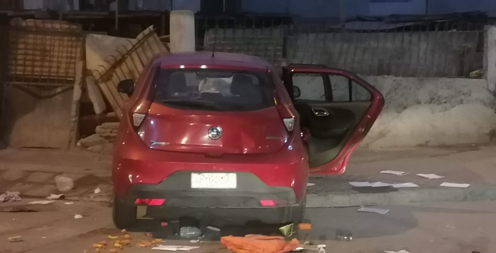 De acuerdo con registros audiovisuales enviados por auditores de Radio Nostálgica, por causas que aún se investigan, el automóvil terminó colisionando con el cierre perimetral del inmueble, provocando evidentes daños materiales en la propiedad.